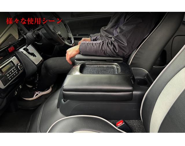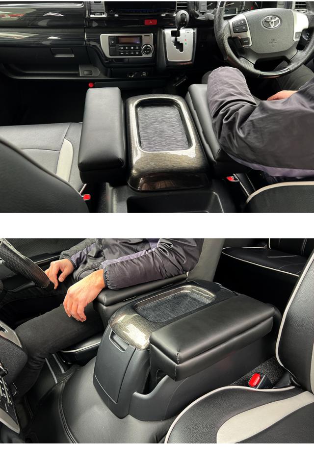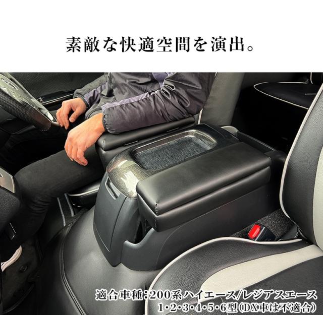 トヨタハイエース トヨタレジアスエース 1型 2型 3型 4型 車内 車 内装 車用品 車内アクセサリー ドレスアップ 簡単 取付 簡単取り付け パーツ カスタム ハイエース内装 レジアスエース内装 肘置き コンソールボックス ブラック 黒 ガソリン車 内装パーツ 高級 カー用品 カーグッズ スーパーGL スーパー GL 高級感 カーグッズ ロング レジアスエースロング
