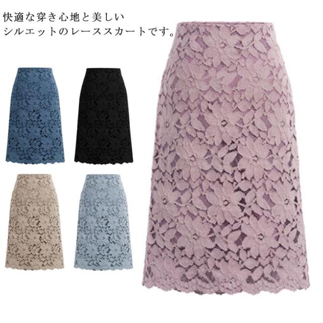 ペンシルスカート レディース ロングスカート タイトスカート ミディアム丈 レーススカート オフィス スカラップレース 膝丈 お出かけ 通勤 春夏 フラワーレース きれいめ 可愛い セクシー 膝丈