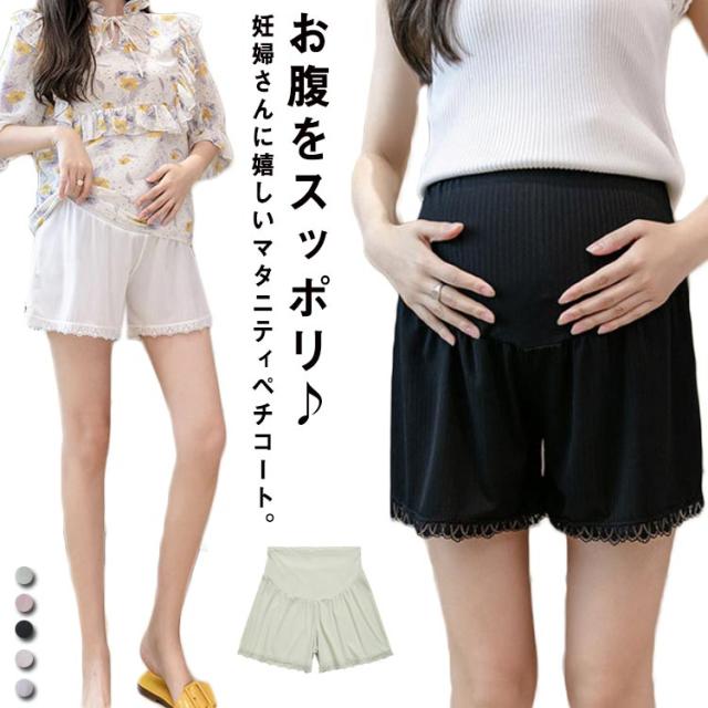 フレアパンツ 裾レース パンツ マタニティ レディース 汗じみ防止 妊婦服 タップパンツ ペチパンツ マタニティウェア 透け防止 インナーパンツ 吸汗速乾 汗じみ防止 ママ ショートパンツ 肌着 薄手 部屋着 夏物 プレゼント ペチコート