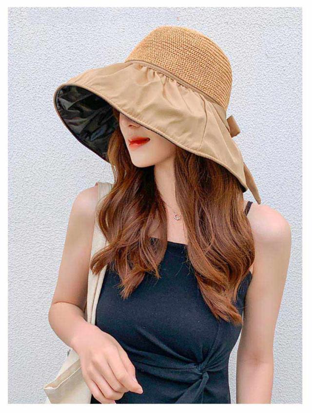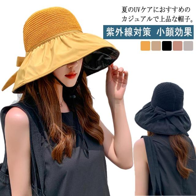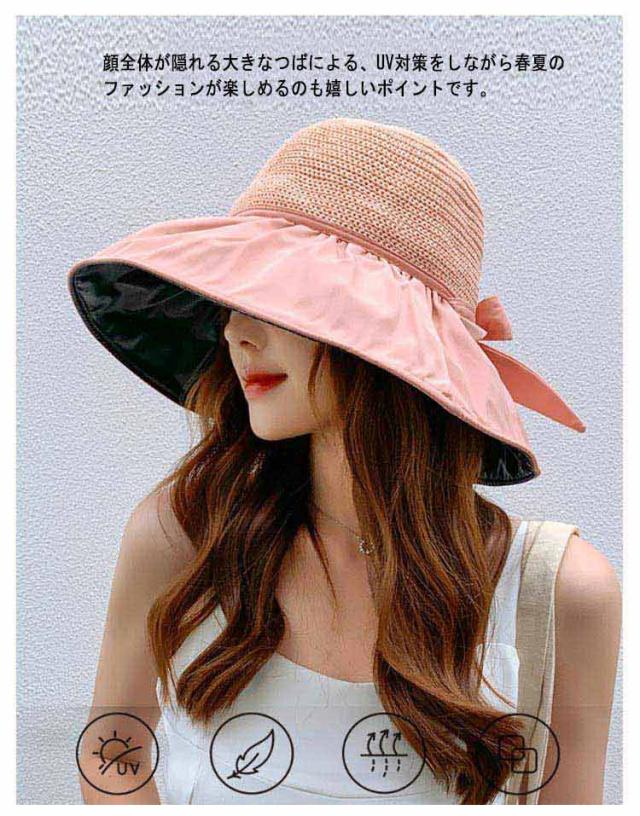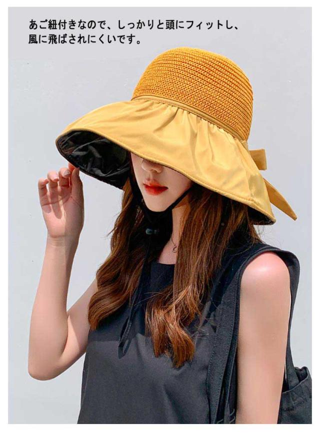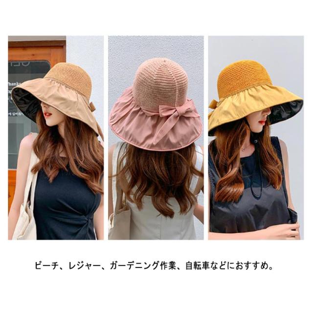 麦わら帽子 折りたたみ UVカット レディース ハット 日焼け止め つば広 おしゃれ 小顔効果 紫外線対策 リボン ストローハット 飛ばない ペーパーハット 海 可愛い UV対策 旅行 リゾート プレゼント 帽子 あご紐 自転車 夏