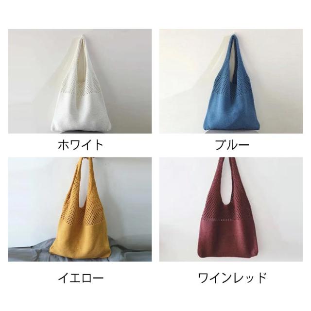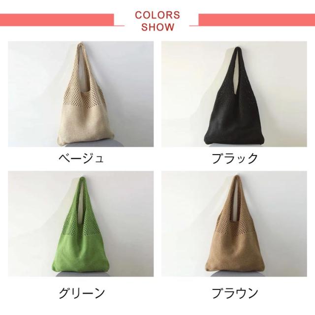 軽量 ハンドメイド レディース カゴバッグ トートバッグ ニットバッグ サマーニット カジュアル 手編み 夏 トート お出かけ 肩がけ かわいい 黒 大人 編み込み 軽い 上品 夏バッグ かごバッグ ショルダー バッグ 籠バッグ バッグ