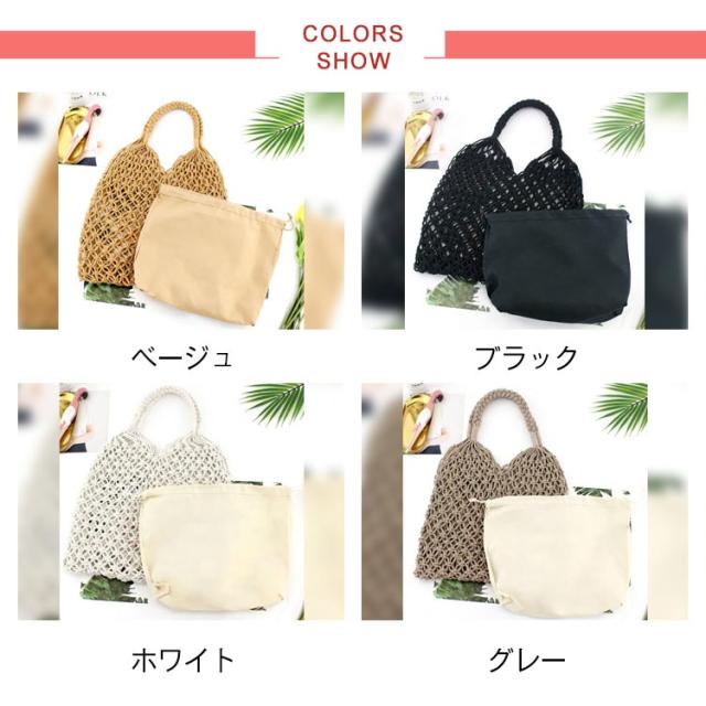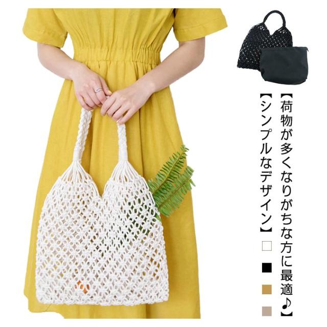 トートバッグ 手編み レディース メッシュ 編みバッグ 大容量 大人 エコバッグ かごバッグ カゴバッグ ストローバッグ 手持ちバッグ 夏バッグ 手提げ おしゃれ トート きれいめ 内袋 手提げ ネットバッグ トートバッグ 春 夏 海 リゾート 巾着