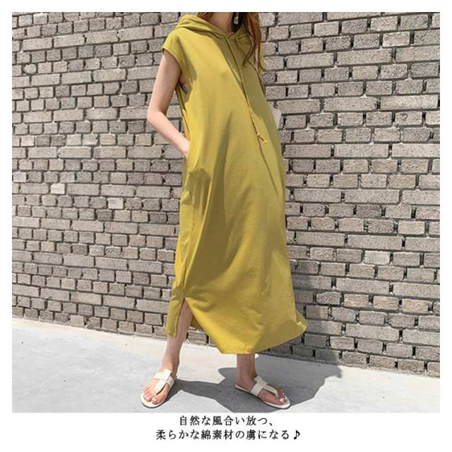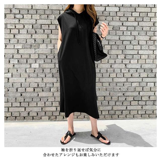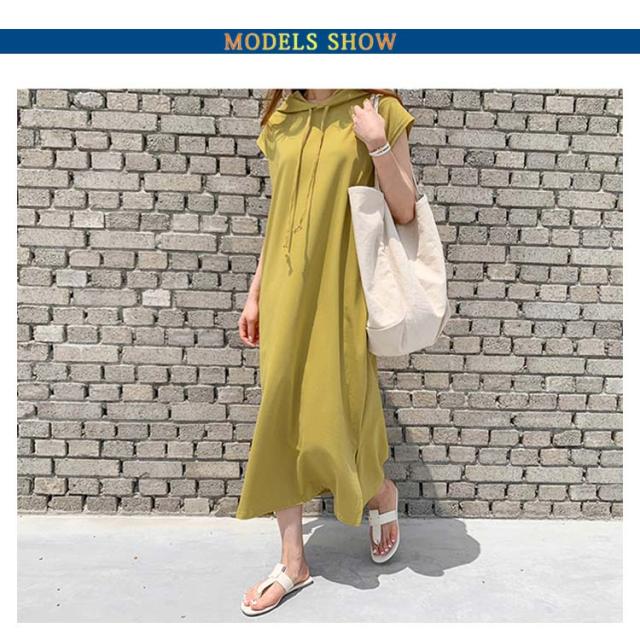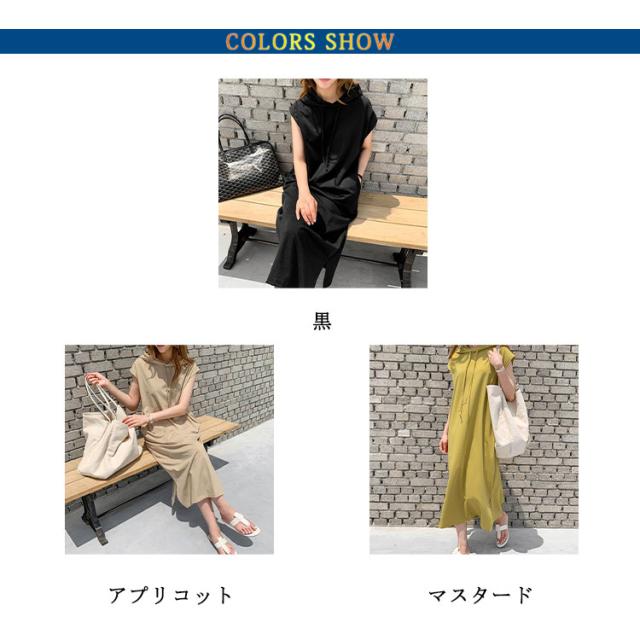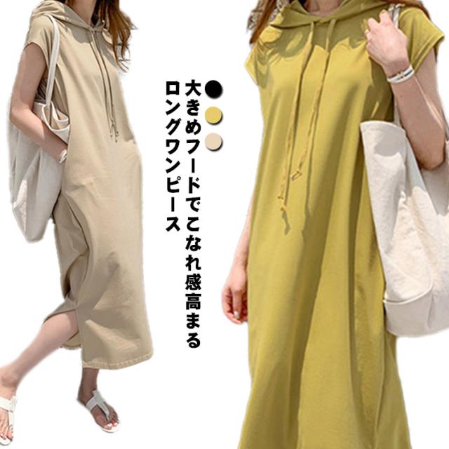 レディース 半袖 春夏 パーカーワンピース 膝下 着痩せ 無地 サイドスリット ポケット付き 夏 ワンピース 体型カバー カジュアル シンプル ロングワンピース フード付き 大きいサイズ ゆったり 体型カバー おしゃれ