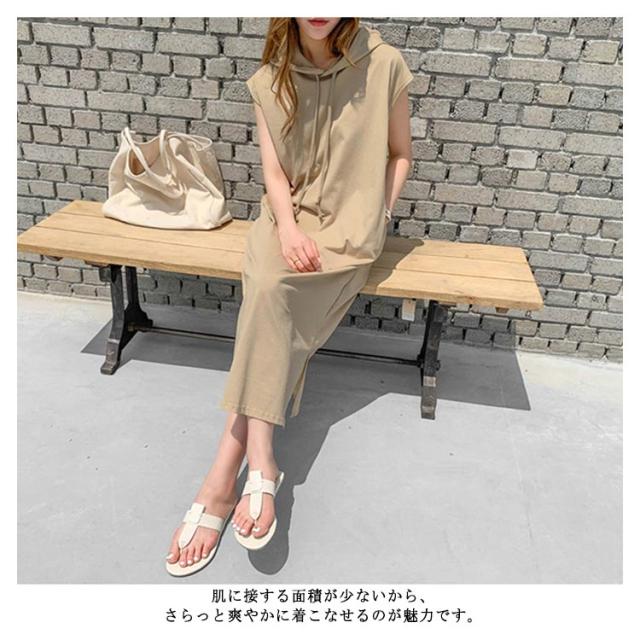 | 大きめフードでこなれ感高まるロングワンピース。 自然な風合い放つ、柔らかな綿素材の虜になる♪ 肌に接する面積が少ないから、さらっと爽やかに着こなせるのが魅力です。 裾のスリットがロング丈でも歩きやすさを実現し、ちらりとボトムを覗かせればレイヤードスタイルも思いのまま。 袖を折り返せば気分に合わせたアレンジもお楽しみいただけます。 | |