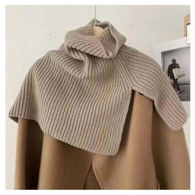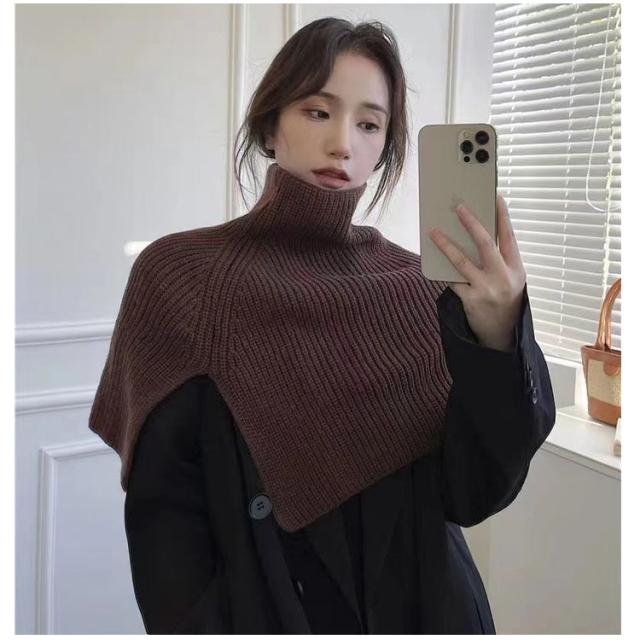 レイヤードタートルネックニット付け襟 つけ襟 重ね着 レイヤード 厚手 秋冬 あぜ編み ニット 衿 防寒 保温 肩掛け 送料無料 ネックウォーマー フェイクカラー マフラー スヌード ケープ ポンチョ つけ襟 秋冬 あったか