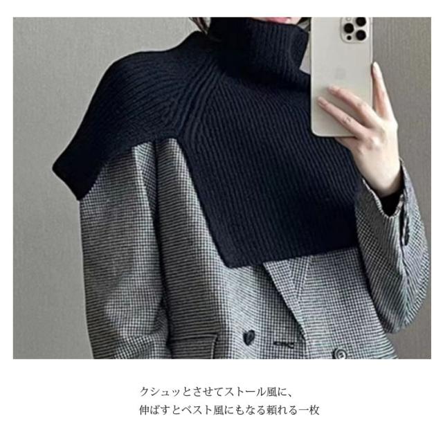 | お手持ちのトップスにINにもコートの上からさっと被ってもおしゃれ。 いつものコーデにプラスワン♪おしゃれに首元を暖めてくれます。 柔らかい厚手のニット生地、背中まで覆うので暖かく、心地良い着用感。 きれいめからカジュアルまで幅広く着回しが効くニット付け襟。 クシュッとさせてストール風に、伸ばすとベスト風にもなる頼れる一枚 春先などアウターのいらない時期に簡単に体温調節に。 | |