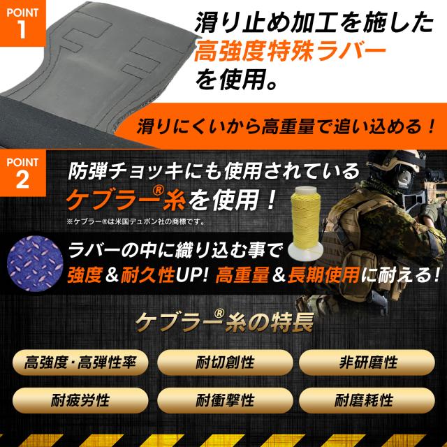 ●滑り止め加工を施した高強度特殊ラバーを使用。ラバーの厚みは3mmで手の平をしっかり保護。米国デュポン社製のケブラー(R)糸を織り込むことにより、高強度・高耐久性・耐疲労性・耐摩耗性のラバーに。高重量の使用に耐え、長く使えるラバーです。バーベルをしっかりつかむにはレザーより断然ラバー!【グリップ感】が違います。初心者から上級者まで。