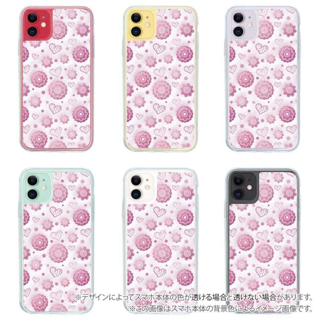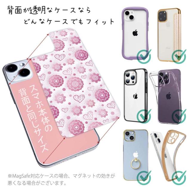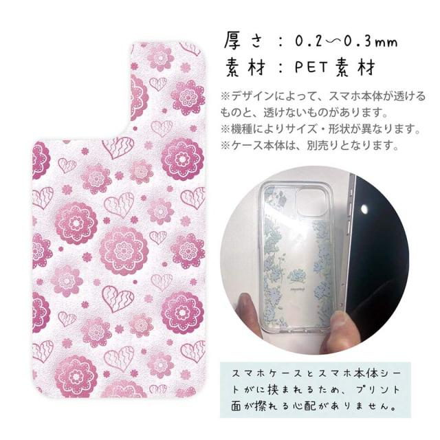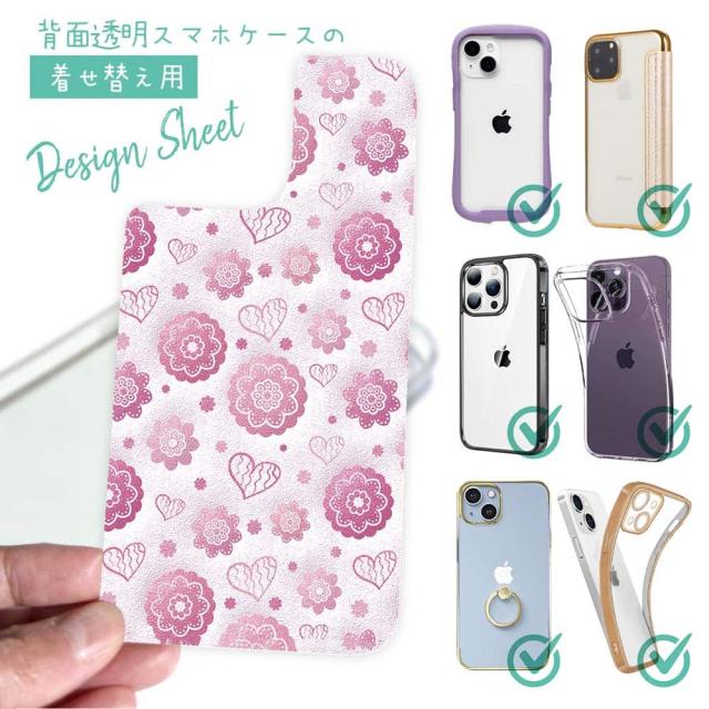 スマホケース iPhone Google Pixel Xperia Galaxy AQUOS arrows 着せ替え シート インナーシート スマホカバー 背面 透明 クリア オリジナル デザイン 花 花柄 可愛いハートと花模様