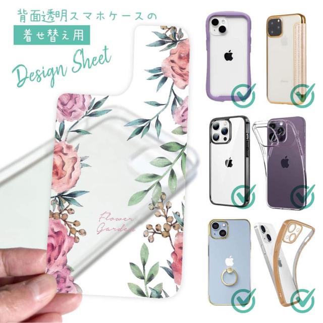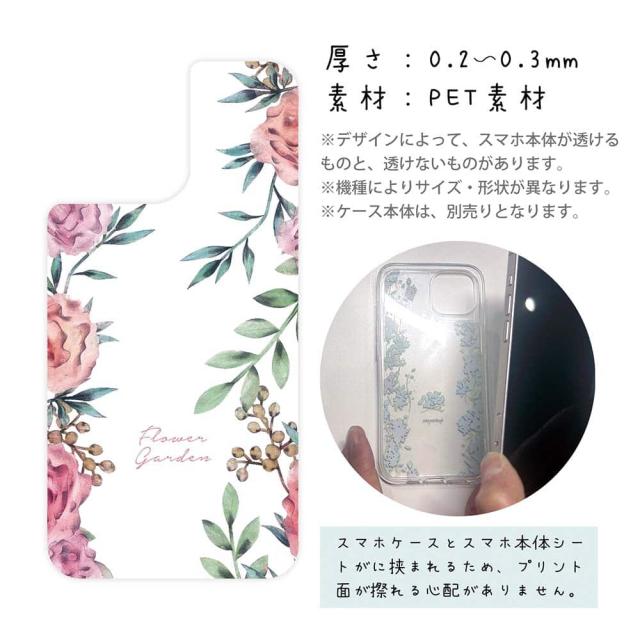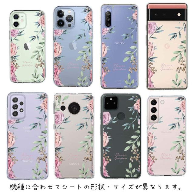 スマホケース iPhone Google Pixel Xperia Galaxy AQUOS arrows 着せ替え シート インナーシート スマホカバー 背面 透明 クリア オリジナル デザイン 花 花柄 フラワーガーデン