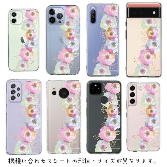 スマホケース iPhone Google Pixel Xperia Galaxy AQUOS arrows 着せ替え シート インナーシート スマホカバー 背面 透明 クリア オリジナル デザイン 花 花柄 フラワーシンフォニー