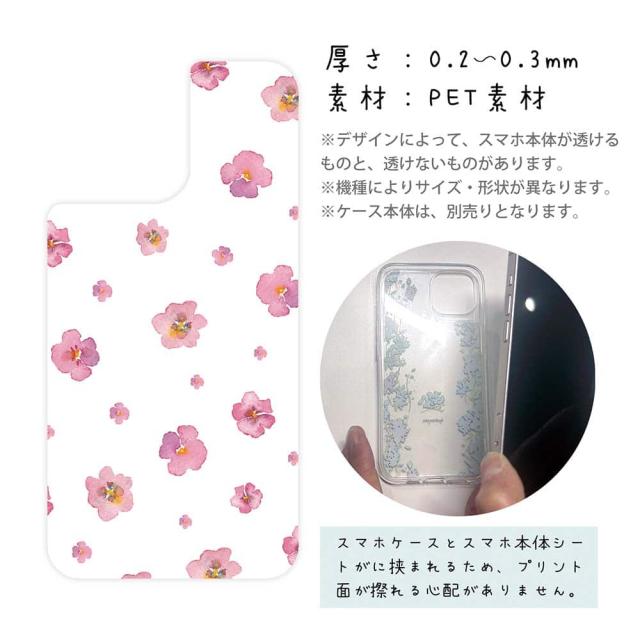 スマホケース iPhone Google Pixel Xperia Galaxy AQUOS arrows 着せ替え シート インナーシート スマホカバー 背面 透明 クリア オリジナル デザイン 花 花柄 ピンクの花のシームレスパターン