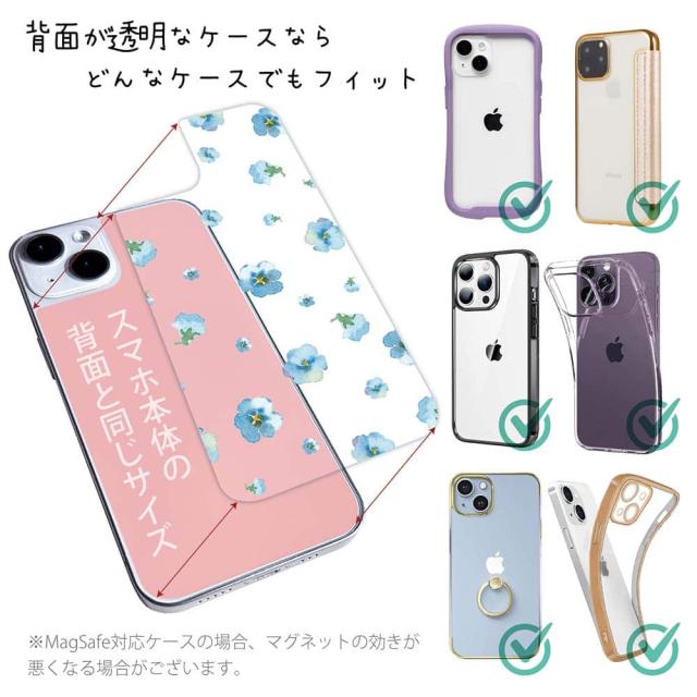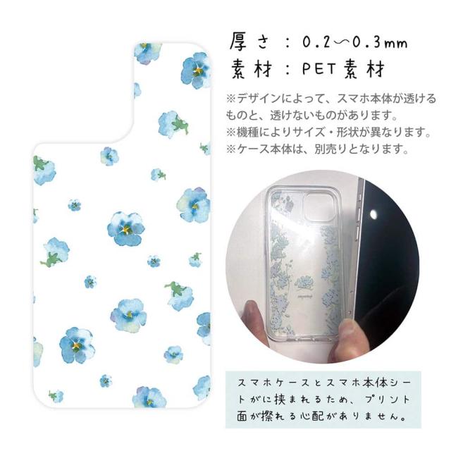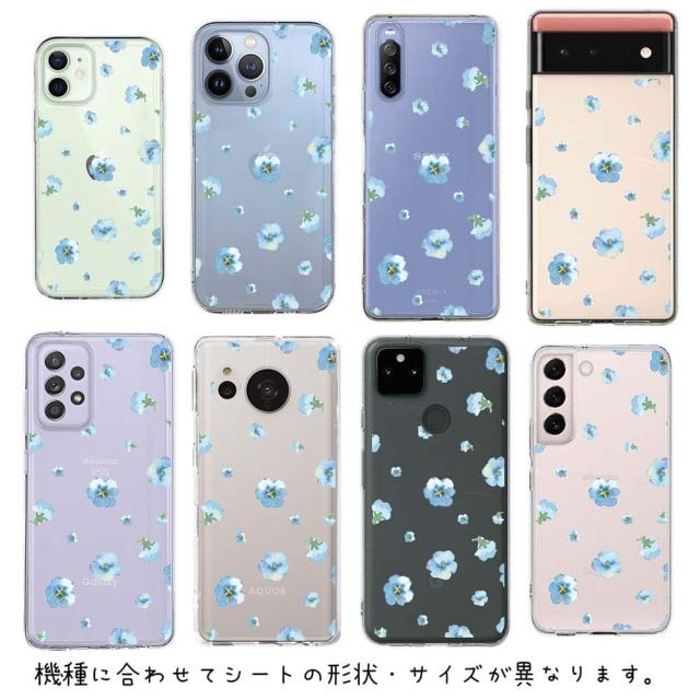 スマホケース iPhone Google Pixel Xperia Galaxy AQUOS arrows 着せ替え シート インナーシート スマホカバー 背面 透明 クリア オリジナル デザイン 花 花柄 ブルーの花のシームレスパターン