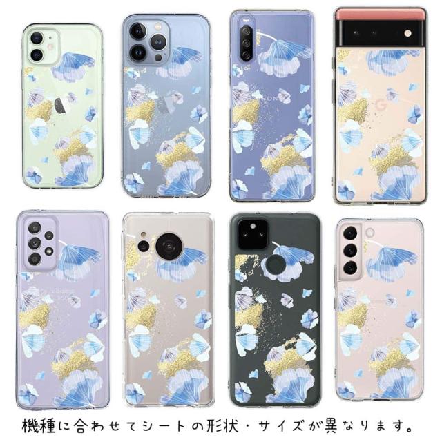 スマホケース iPhone Google Pixel Xperia Galaxy AQUOS arrows 着せ替え シート インナーシート スマホカバー 背面 透明 クリア オリジナル デザイン 花 花柄 プランツデザイン No.9
