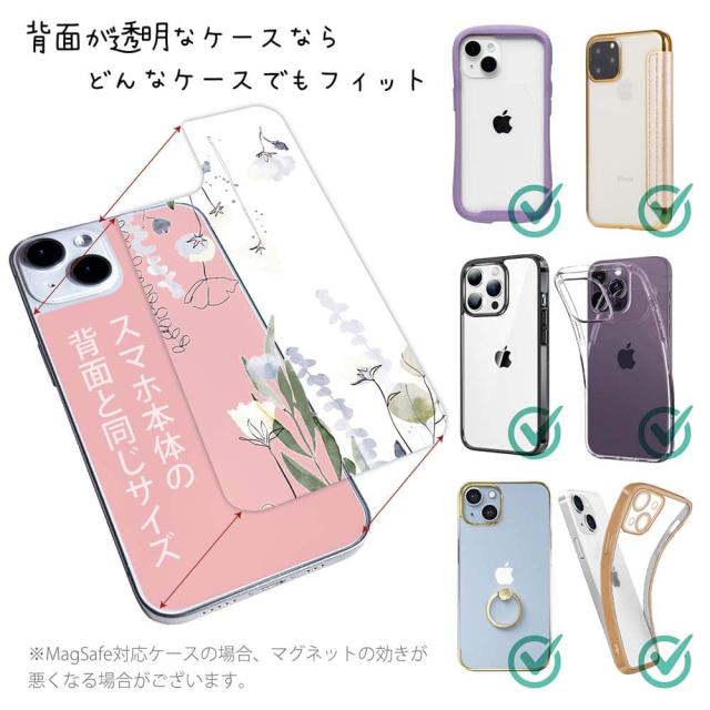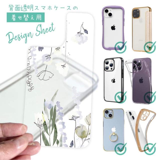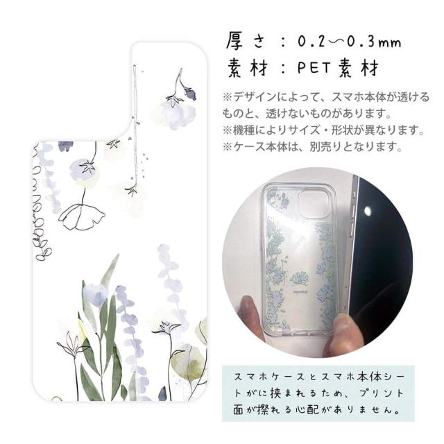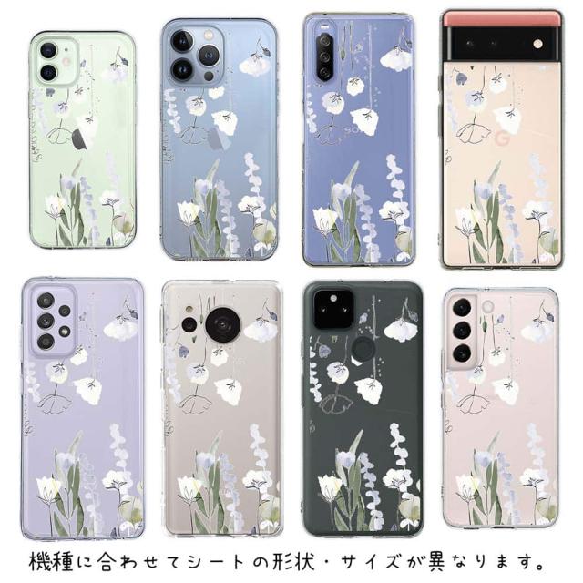 スマホケース iPhone Google Pixel Xperia Galaxy AQUOS arrows 着せ替え シート インナーシート スマホカバー 背面 透明 クリア オリジナル デザイン 花 花柄 デリケートペイント グリーン