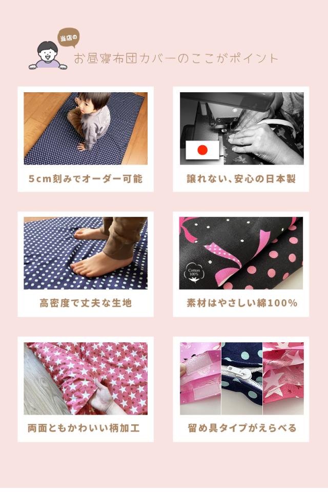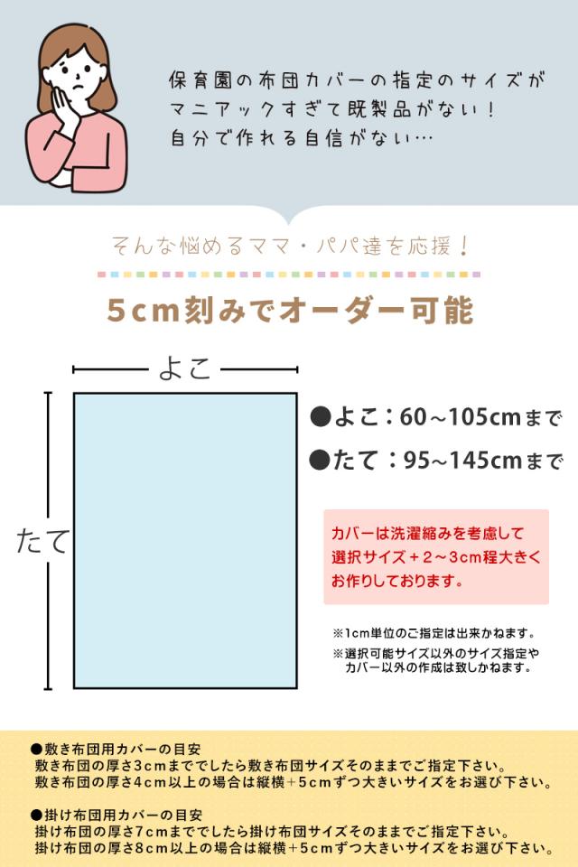 日本製 お昼寝布団カバー サイズオーダー 受注生産 綿100% ベビー用 子供用 敷き布団カバー 掛け布団カバー 兼用タイプ 高密度生地 保育園 敷きカバー キッズ用 ベビー布団 カバー 幼稚園 布団カバー ベビーカバー 入園 安心 かわいい マジックテープ ファスナー 選べる