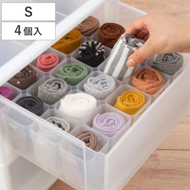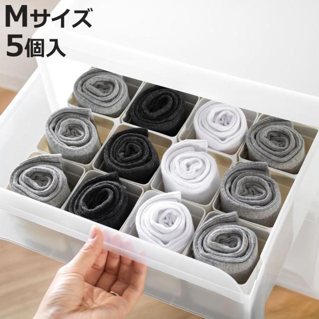 仕切りケース 幅7.4×奥行7.4×高さ8cm くつ下整理カップ M 5個入り 小物収納 ( 収納 引き出し 仕切り 靴下 収納ケース インナーケース プラスチック 連結 仕切りボックス 日本製 タンス 整理 下着 タイツ ネクタイ ハンカチ 小物 )