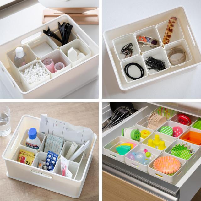 衣類以外にも化粧道具やアクセサリー、薬、キッチン小物など細々したものを種類ごとに収納できます。必要なものが一目で見つかり、さっと取り出せてとても便利です。使用用途を問わず、アイデア次第で様々な使い方が可能です。