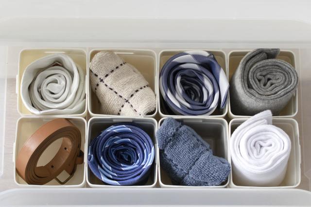 カップはしっかりしたつくりなので、型崩れせずに靴下を出し入れできます。下着やネクタイも安心して収納できます。