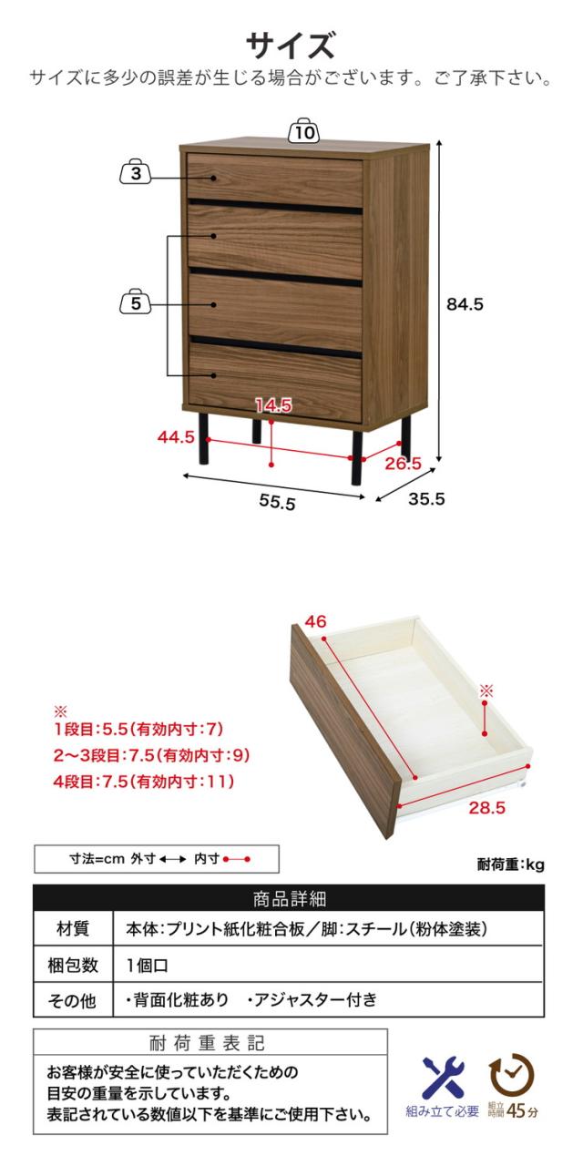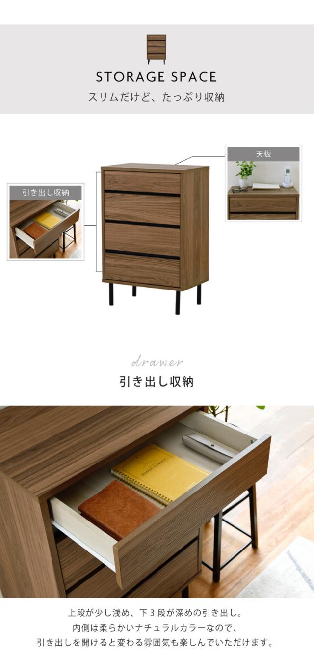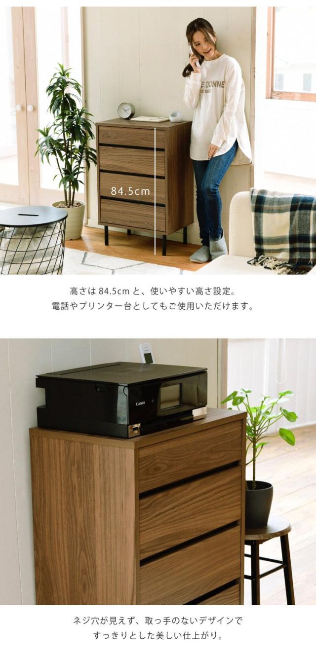 リビングチェスト 幅55.5 北欧 スリム 木製 奥行35.5 プリンター台 プリンターラック チェスト 4段 脚付き 洋服チェスト 一人暮らし ブラック ダークブラウン 引き出し 収納 小物 木製 黒(代引不可)【送料無料】