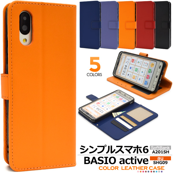 スマホケース シンプルスマホ7 A404SH シンプルスマホ6 A201SH au BASIO active SHG09 手帳型 カラーレザーケース お洒落 無地 装着簡単 シンプル かわいい 上品 ベーシック 携帯ケース スマホカバー au携帯カバー 携帯カバー auスマホ 保護カバー シンプル可愛い