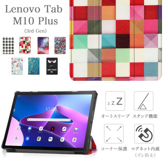 ブルーライトカット 強化ガラスフィルム タッチペン付 Lenovo Tab M10 Plus ( 3rd Gen ) ケース TB-125F / TB-128F /TB-128FU / NEC LAVIE Tab T1075EAS / TAB10202 3つ折り レノボ タブM10 プラス 第3世代 PUレザー タブレットカバー オートスリープ機能 かわいい おしゃれ