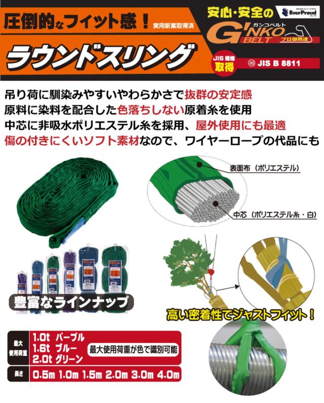 エバープラウド ラウンドスリング 1.6t×1m EGRS 1B 荷締め 吊具 スリングベルト 固定用 荷崩防止 運搬 安定 速乾