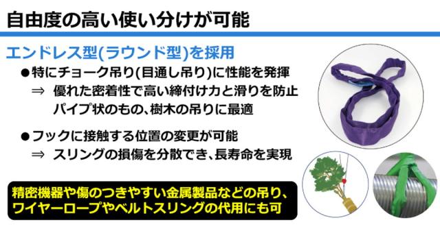 ※角張った物を吊り上げる時や、横滑りのおそれのある場合、スリング保護のためにコーナーパットをご使用ください。