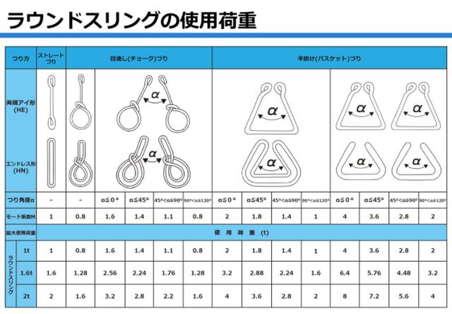 ※スリングの使用荷重は荷の吊り方により変化します。最大使用荷重以下でご使用ください。