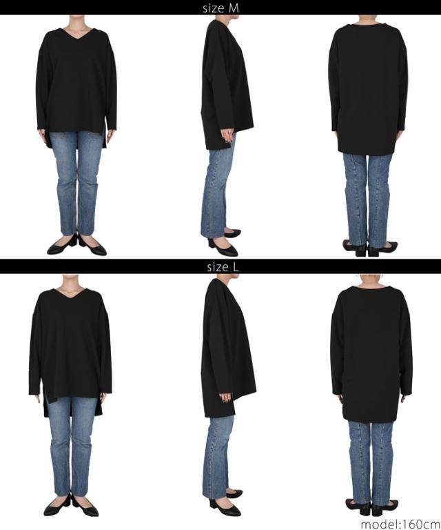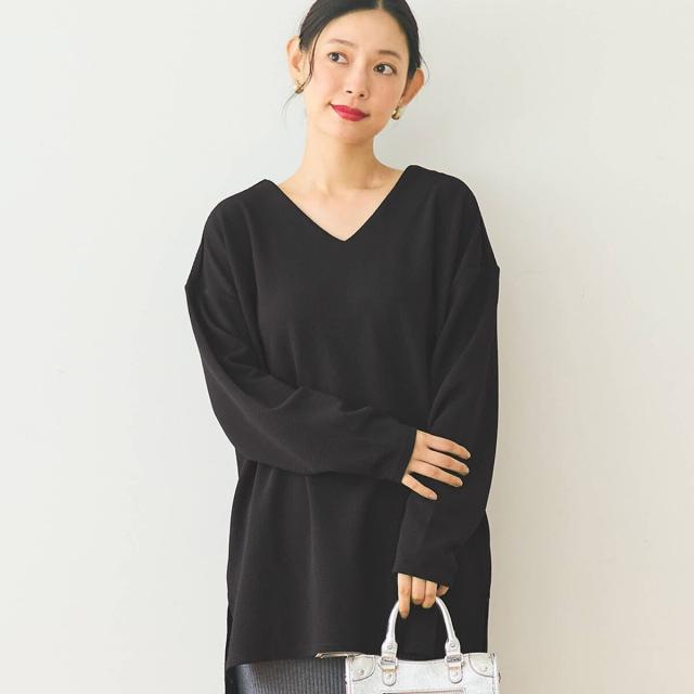 首元がすっきり見える見返し仕様のVネック。