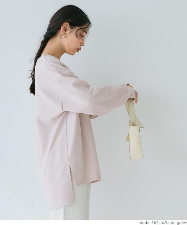 首元がすっきり見えるエンボスVネックプルオーバー
