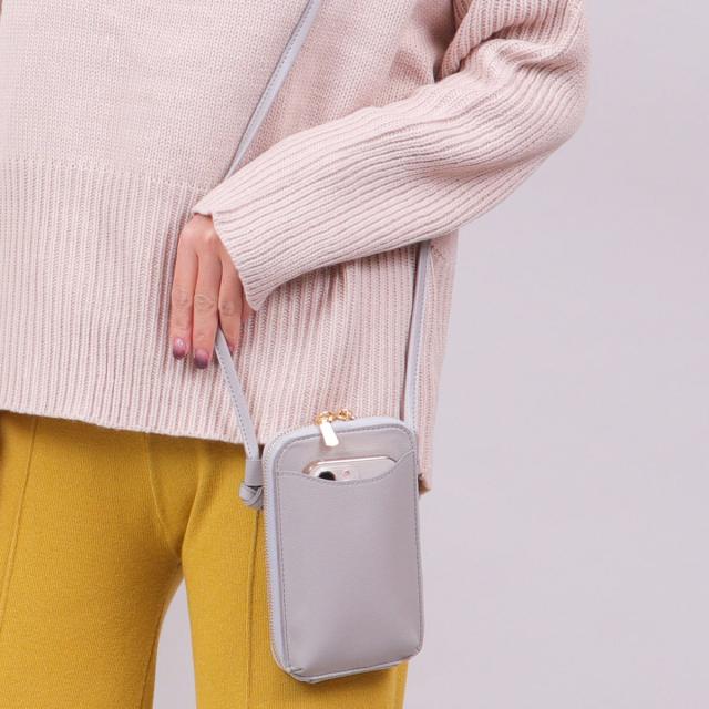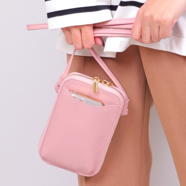 スマホポケットが付いた機能的なミニショルダーバッグ。
