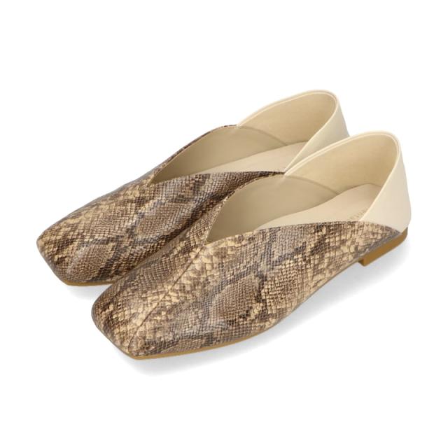 ■素材:アッパー:ブラック/ベージュ→ヘビ柄型押し合皮×合成皮革、裏側:羊革×ナイロン生地、ソール:ゴム