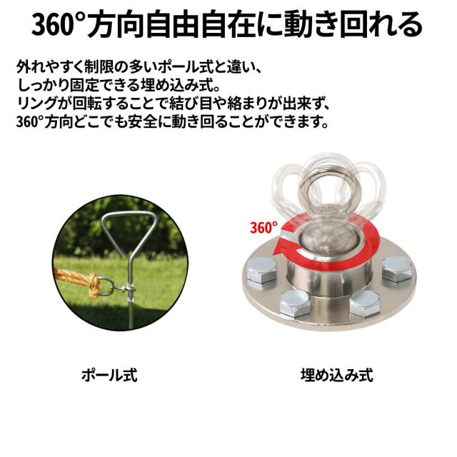 外れやすく制限の多いポール式と違い、しっかり固定できる埋め込み式。