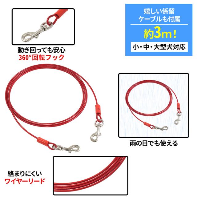 ドッグアンカー ドッグポール ワイヤーリードセット 係留ステッキ グラウンドアンカー ドッグフック 係留ポール ワイヤーロープ 犬用品 外遊び 屋外 アウトドア キャンプ