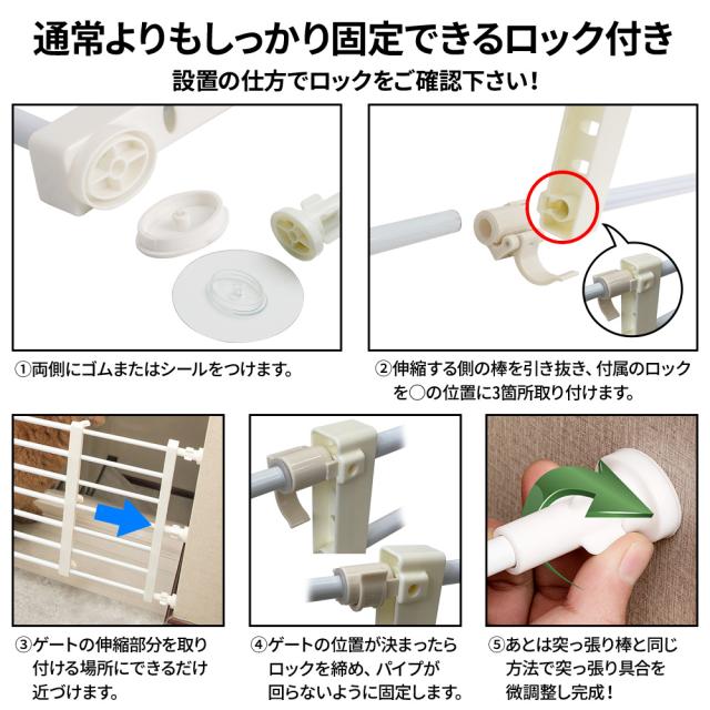 突っ張り式のためゲートがズレにくく、体重がかかっても倒れにくい設計です。