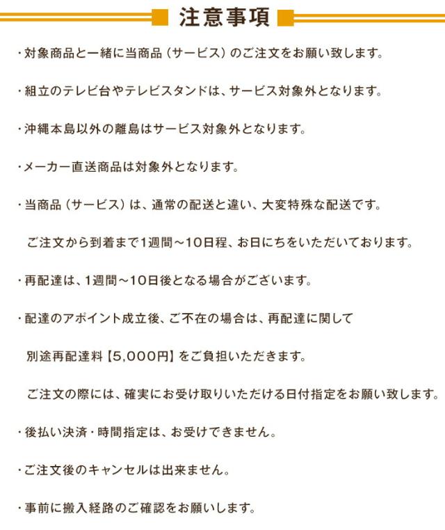 【正午〜P5%還元】 【テレビ台専用】開梱設置サービス 【超大型】【組み立てのテレビ台/テレビスタンド、及び沖縄本島以外の離島は対象外】 【後払/時間指定NG】搬入設置サービス 搬入設置 搬入 設置 テレビ台 TV台 TVボード