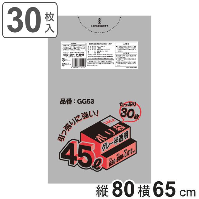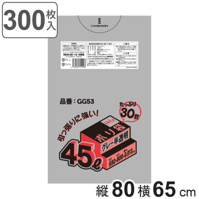 ゴミ袋 45L 80×65cm 厚さ0.013mm 30枚入 グレー半透明 10袋セット GG53 ( ポリ袋 ごみ袋 45リットル 300枚 ゴミ 袋 グレー 縦80cm 横65cm カサカサ ポリエチレン キッチン リビング 消耗品 常備品 色付き )