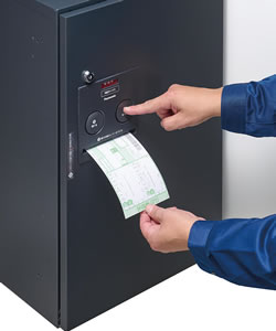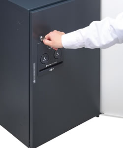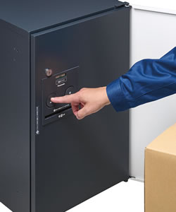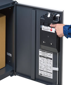 表示パネルの記載に従い、1〜4の順に操作すれば、簡単に荷物の受け入れができます。大きめのボタンで操作性に配慮しました。独自の捺印機構で電源要らず。電気配線工事も不要です。
