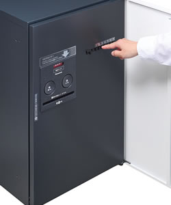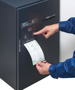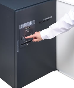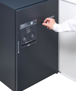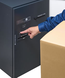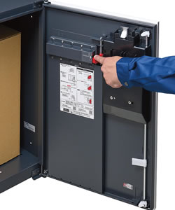 表示パネルの記載に従い、1〜4の順に操作すれば、簡単に荷物の受け入れができます。大きめのボタンで操作性に配慮しました。独自の捺印機構で電源要らず。電気配線工事も不要です。