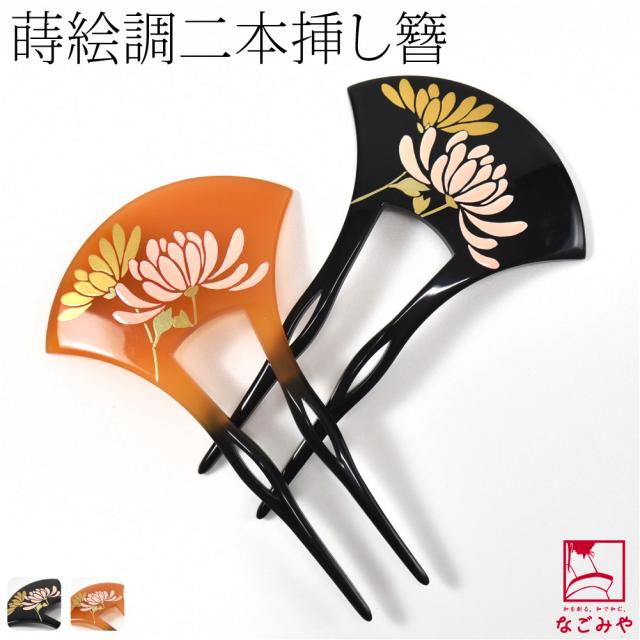 和装 髪飾り 結婚式 留袖 通年用 日本製 蒔絵簪 バチ型 菊 かんざし 簪 二本差し 礼装 大人 レディース 女性 10023310