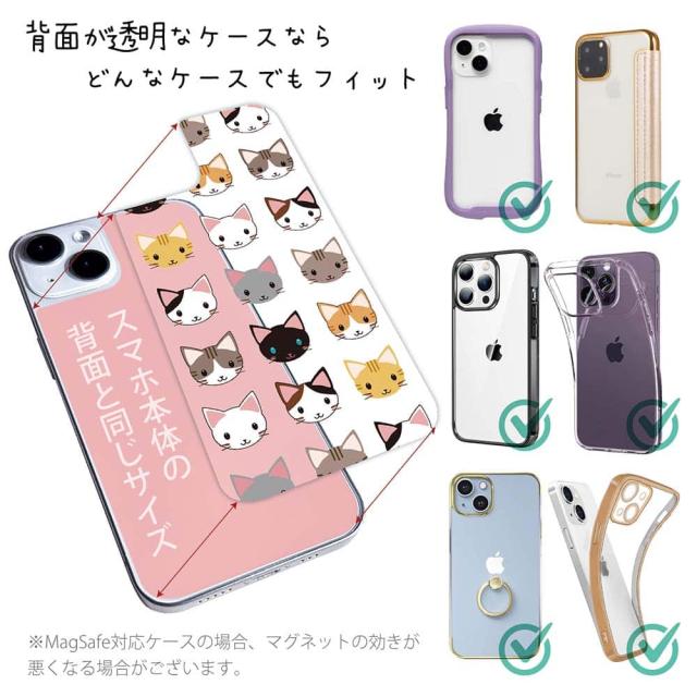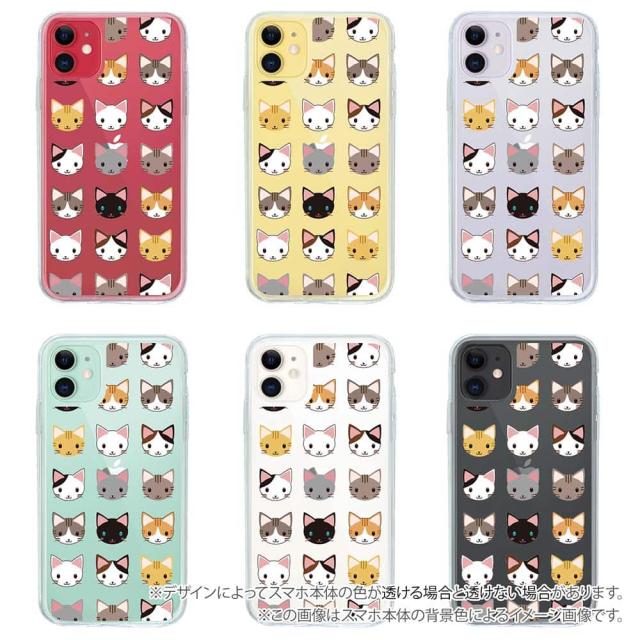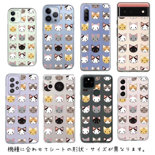 スマホケース iPhone Google Pixel Xperia Galaxy AQUOS arrows 着せ替え シート インナーシート スマホカバー 背面 透明 クリア オリジナル デザイン 猫 ネコ 猫の顔のシームレス