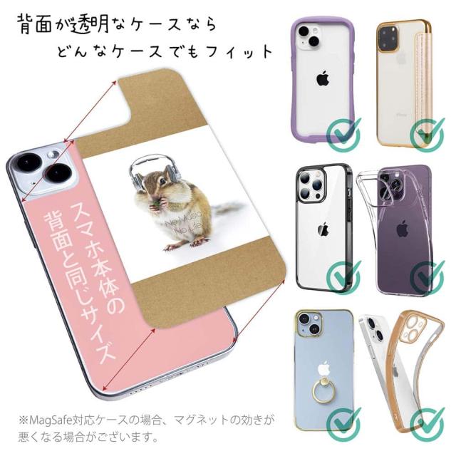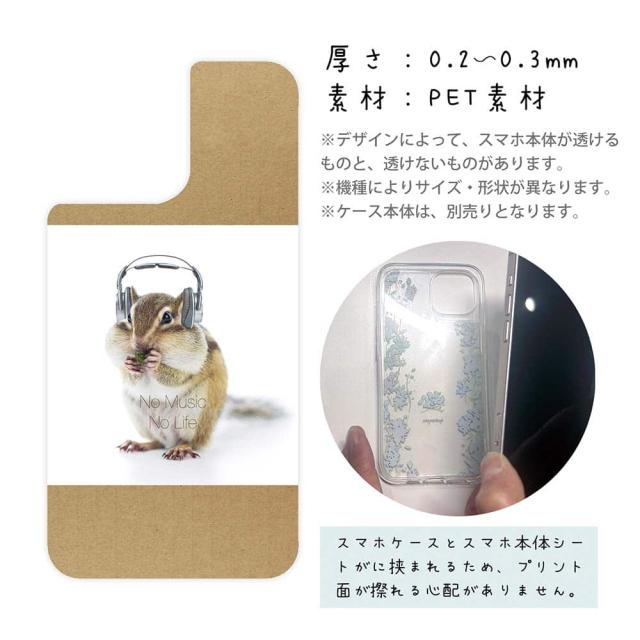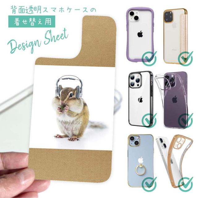 スマホケース iPhone Google Pixel Xperia Galaxy AQUOS arrows 着せ替え シート インナーシート スマホカバー 背面 透明 クリア オリジナル デザイン リスだってNo Music No Life