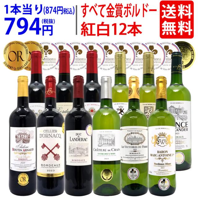 ワイン ワインセット すべて金賞フランス名産地ボルドー赤白12本セット (赤6本+白6本) ワインセット 大人気 紅白 ^W0UK49SE^
