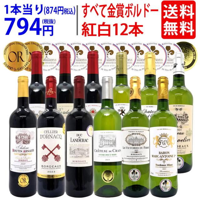 ワイン ワインセット すべて金賞フランス名産地ボルドー赤白12本セット (赤6本+白6本) ワインセット 大人気 紅白 ^W0UK50SE^