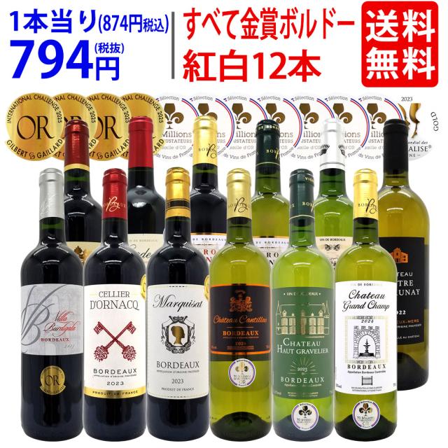 ワイン ワインセット すべて金賞フランス名産地ボルドー赤白12本セット (赤6本+白6本) ワインセット 大人気 紅白 ^W0UK52SE^
