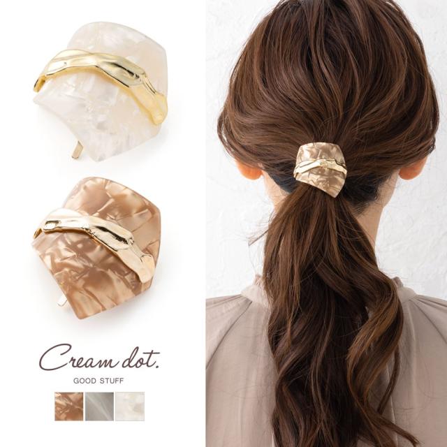 クラフト調のメタルとマーブルを組み合わせたオシャレ度◎なポニーフック。結び目に差し込むだけで簡単にトレンドライクな印象に仕上がります。大人っぽくニュアンスのあるカラーリングもポイント。