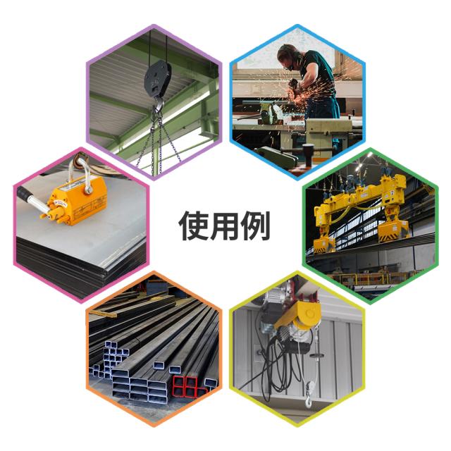 ●使用条件および使用方法によって吊上重量は異なりますので、表記の吊上重量が全ての使用環境において保証されるとは限りません。慎重に確認しながらご使用頂ください。不適切な使用による事故および損害に関しては当社では一切の保証を致しかねます。