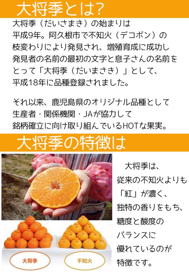 大将季 デコポン みかん 不知火 化粧箱入 送料無料 鹿児島県産 大将季 化粧箱 9-12玉入 ギフト 光糖度センサー検査済 糖度保証 しらぬい デコポン だいまさき