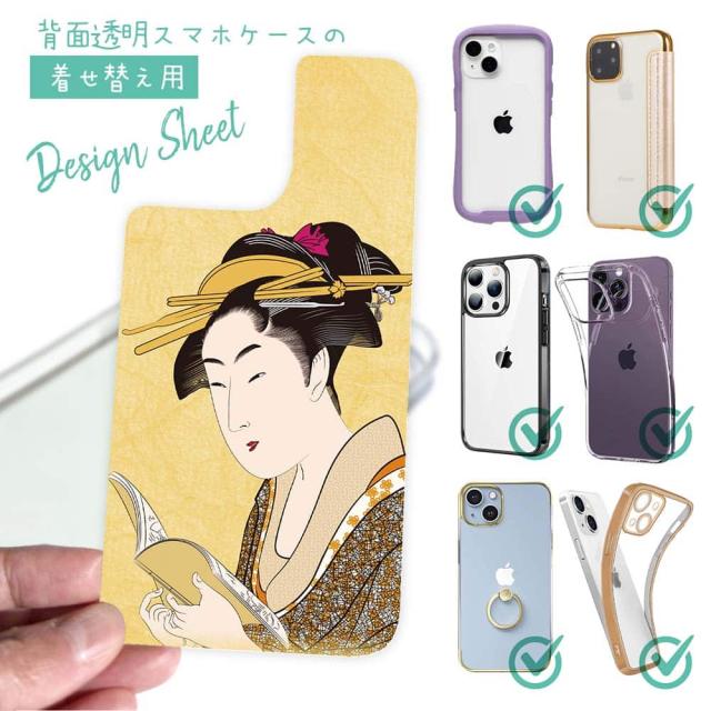 スマホケース iPhone Google Pixel Xperia Galaxy AQUOS arrows 着せ替え シート インナーシート スマホカバー 背面 透明 クリア オリジナル デザイン 歌舞伎 日本画 浮世絵 美人絵 その4