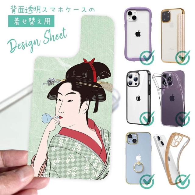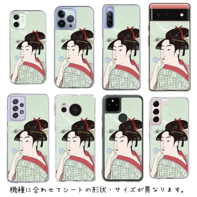 スマホケース iPhone Google Pixel Xperia Galaxy AQUOS arrows 着せ替え シート インナーシート スマホカバー 背面 透明 クリア オリジナル デザイン 歌舞伎 日本画 浮世絵 美人絵 その5